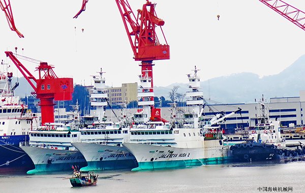 目前厦船重工公司、马尾造船公司、东南造船公司等骨干企业生产任务已安排到2020——2022年。在民营船舶骨干企业中,如世纪华海船舶重工、恒生船舶重工、立新船舶工程公司、万达船业公司、国安船业公司等也有相当数量的船舶订单,为后续的健康发展奠定了基础。二是产品结构不断优化。主要表现为船舶企业贴近市场需求,不断推动优势船型品牌建设,加大高端特种船舶的研发、制造和接单力度。马尾造船公司成功研发建造227米深海采矿船、105米饱和潜水支持船、5000吨级敷缆船、6000至8000吨级系列沥青船等。厦船重工开工承建全球最大7500车位LNG汽车滚装船、2400TEU集装船系列。东南造船公司开发12000WF成品油船、海上风电运维船、铝合金游艇等。马尾造船公司承接的国内首座单柱式半潜深海渔场,标志着福建深海养殖装备产业迈出了重要一步。三是扎实提升船舶建造速度。主要表现为企业将“提速增效”做为第一要务。一季度骨干船企克服了节日、气候等诸多影响因素,科学安排产品节点计划,强化各项基础管理,确保提速增效。厦船重工公司三艘2400TFU集装船的开工、下水、交船三大节点均实现提速。马尾造船公司交付了2艘7499吨沥青船,277米深海采矿船于3月29日成功出坞。东南造船公司实现了106米客滚船、300吨渔政船、12000WF成品油船交船,12000WT成品油船刷新了从开工到交船80天的记录。福宁船舶重工3艘出口印尼的客滚船分别实现船台合拢、下水、试航三大节点。恒生船舶重工刷新了一次性交付远洋渔船25艘记录。世纪华海船舶重工出口澳大利亚10艘新渔船。立新船舶公司分别开工2艘大型海上渔业加工船等。