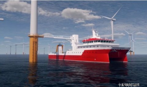 该型船总长56米,型宽16.8米,型深7.15米,设计吃水3.8米,结构吃水4米,设计航速大于等于17.5节,深度融合海洋调查、海洋工程、风电运维等细分装备的技术特点和功能需求,充分借鉴欧美国家先进成熟的海洋工程理念,同时又与我国海上风电行业发展的具体路线相结合,既保证装备性能的优异性,又注重作业功能的多样性。