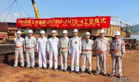 10月15日,福建船政旗下福宁重工建造的78米操锚供应船(DN78M-AHTS-4)顺利上船台。