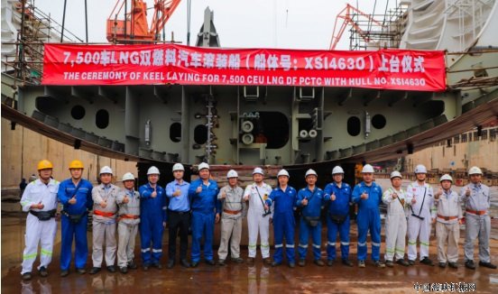 10月30日,福建船政旗下马尾造船建造7500车LNG双燃料汽车滚装船(XSI463O)顺利上船台。