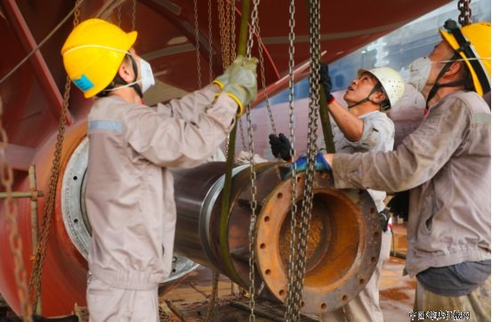 精密安装范式升级。悬空进轴工艺使轴系安装效率提升,作业安全性达100%,彻底消除传统吊装导致的轴承损伤风险;全周期效率突破。安装工序前移至分段预装阶段,单船节约施工周期4天,船坞搭载效率有效提升;技术普适性拓展。专用工装与模拟技术已适配公司在建船型,形成轴系安装标准化工艺库,为后续高端船型建造提供技术储备。