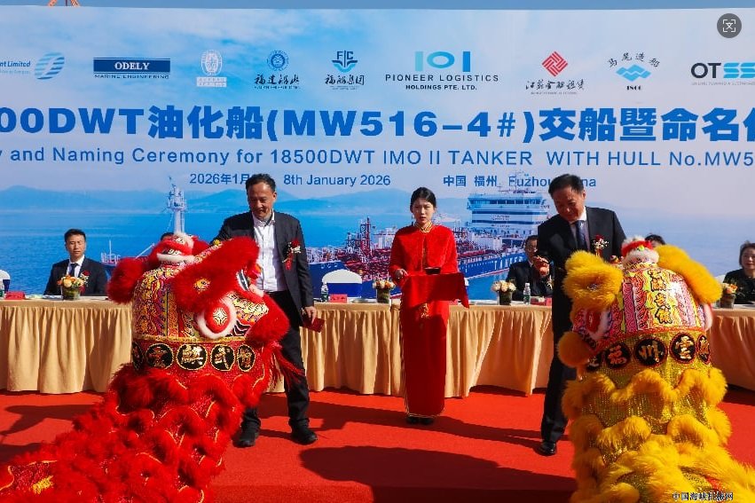 1月8日,马尾造船建造的18500DWT油化船(MW516-4)顺利交付,较合同期提前235天。江苏金融租赁、先锋物流控股集团、BV船级社、上海欧得利船舶工程有限公司、FLEET监造公司、OSM Thome公司、福船集团和福建船政相关领导出席交船仪式。