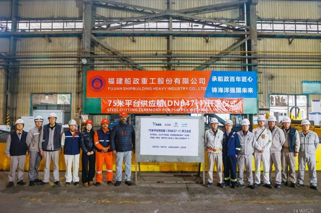 1月26日,福建船政旗下东南造船建造的75米平台供应船(DN647-1)顺利开工。