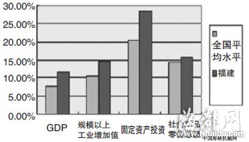 根据全国经济综合竞争力研究中心的测算,11.3%的GDP增速在东部各省区中位列第二,而人均GDP则已达到东部地区平均水平的91.5%,比2009年增长7.5个百分点。省九次党代会指出,到2016年,福建生产总值、人均生产总值、财政总收入要实现翻番,力争城乡居民收入实现倍增,人均地区生产总值赶超东部地区平均水平,综合竞争力显著增强,成为中国新的经济增长极。