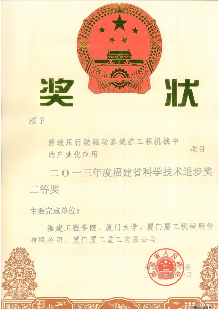 厦工重工科技项目喜获2013年度福建省科学技术进步奖
