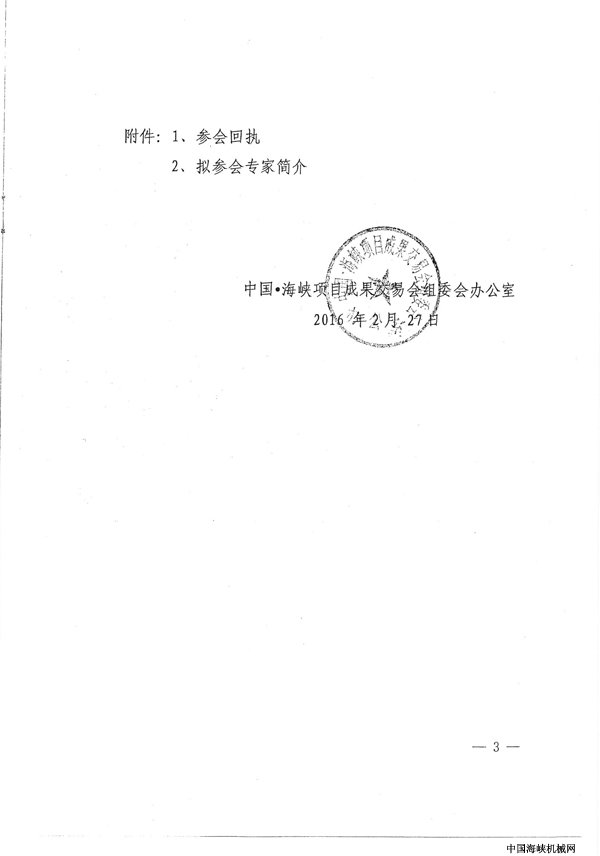 附:中国·海峡项目成果交易会组委会《关于召开福建装备制造业发展论坛暨项目对接会的通知》(组办字〔2016〕3号)