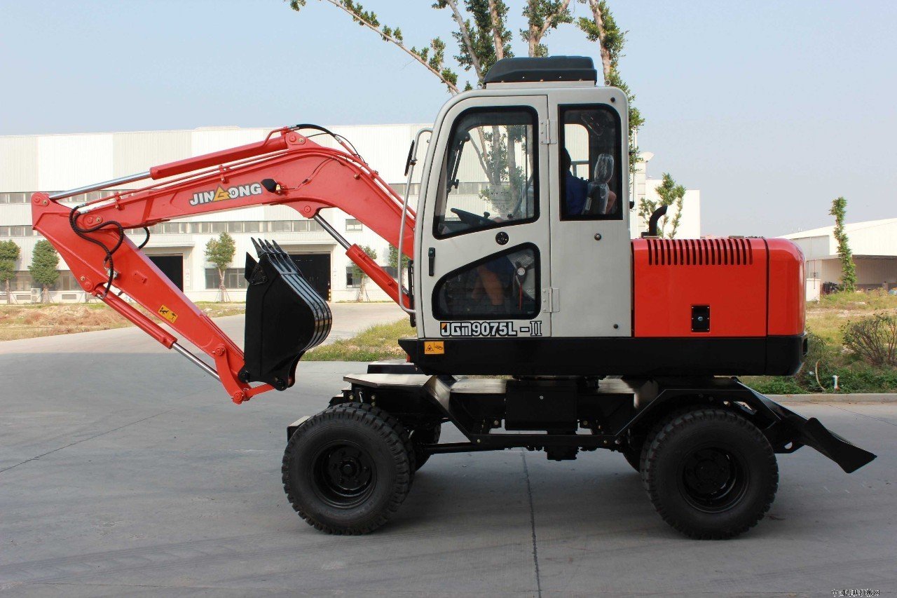 一、晋工7吨级轮式液压挖掘机新款JGM9075L及其变型机是目前国内同类经济型产品(6T、6.5T、7T型)的最高技术配置。该机型的挖掘力、作业速度、作业范围、生产效率、能源消耗、行驶速度、操作舒适性等主要指标,均处于国内一流水平。
