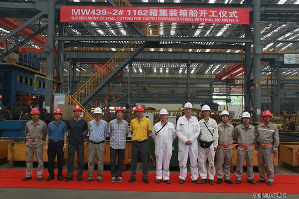 5月22日下午,马尾造船公司为船政海外发展有限公司(以下简称COD公司)承建的1162TEU支线型集装箱船(MW439-2#)在马尾造船联合车间顺利点火开工。COD公司董事兼总经理李柳根、租家项目监造和马尾造船公司党委委员、常务副总经理李成清及相关人员出席了开工仪式。据了解,该船针对东南亚特定航线设计而成,总长约159.85米,载重量约16000吨,可装载1162个标准集装箱,其中可装载232个冷藏集装箱。该系列船首制船于2017年2月27日举行了开工仪式,预计明年4月份出坞,2#船预计明年7月份出坞。