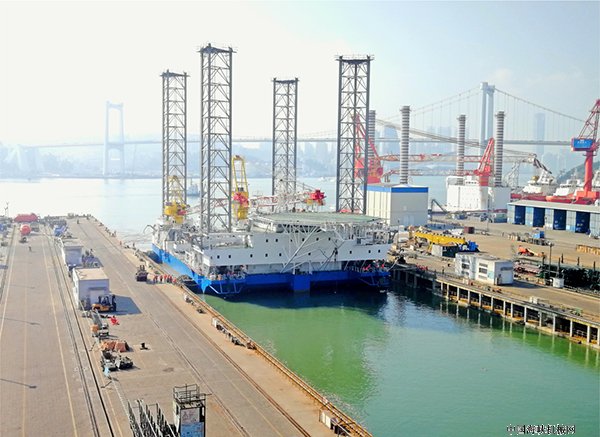 该平台建造难度较高,在相关部门的密切配合下,厦船重工建造团队解决了多个技术难点,充分发挥在汽车滚装船和总结海上风电一体化作业移动平台上的建造优势,较好地控制了建造周期和精度。坞造阶段平台的设备调试基本完成,内外通导设备具备试航状态,内装及全船涂装初步完成,出坞就达到了基本具备交船状态。