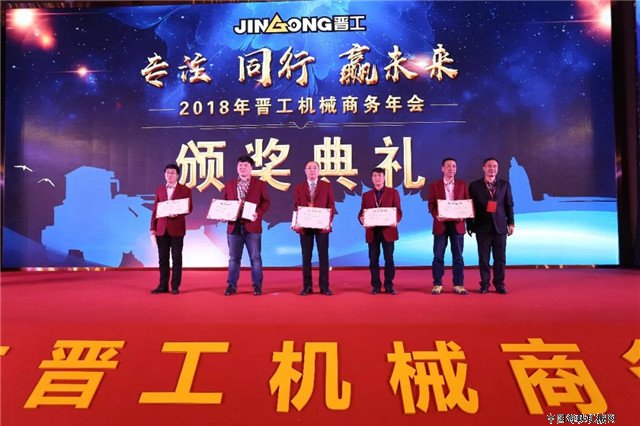 2018年晋工机械商务年会隆重举办年度颁奖典礼,对优秀经销商和销售能手、服务能手、优秀办事处进行了表彰和奖励。