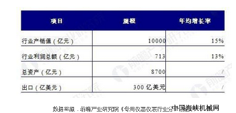 按照发展趋势,未来五年,行业产销值达到或接近万亿元,年均增幅为15%,累计增幅在75%以上。其中全行业利润总额将达到713亿元,年均增幅为13%;主营收入利润率达到8.5%-9%,总资产达到8700亿元,同时,行业出口额超过300亿美元,且出口增幅大于进口增幅,其中本土企业的出口比例将大于50%。