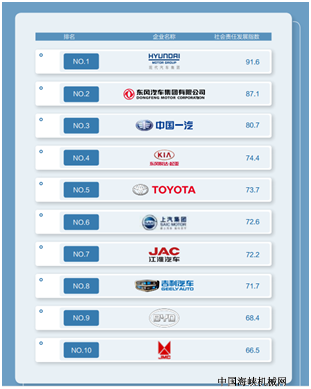 对合资车企社会责任发展现状的研究得出,2018年,东风悦达起亚汽车有限公司(74.4分)、广汽丰田汽车有限公司(73.7分)、江铃汽车股份有限公司(66.5分)荣获合资车企社会责任发展指数前三甲。但有18家合资车企社会责任发展指数得分不足20分,其社会责任管理和社会责任信息披露仍处于一星级起步阶段,履责意识亟待提升。