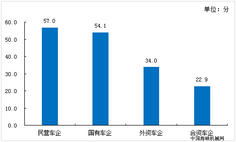 民营车企和国有车企社会责任发展指数领先于外资车企与合资车企。2018年,国有企业、民营企业社会责任发展指数均超过50分,处于三星级(追赶者)阶段,而外资车企与合资车企仍处于二星级(起步者)阶段。
