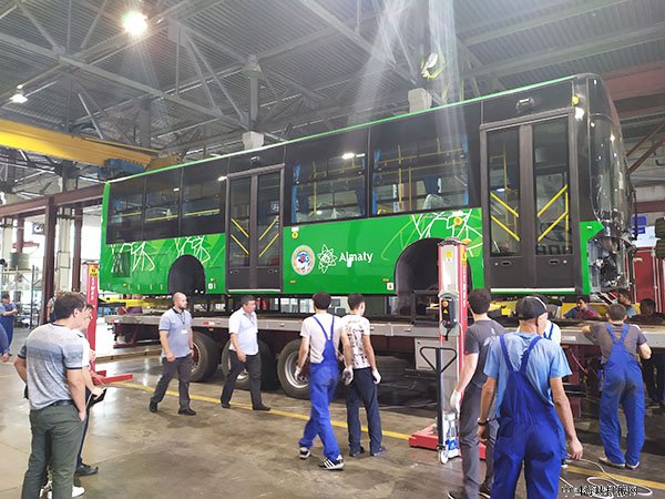 2019年7月,经过一轮轮严格的筛选,金旅客车凭借着先进的工艺标准、多层次全方位品质管控、丰富的海外KD项目经验,突出重围斩获了60台哈萨克斯坦最大城市阿拉木图BRT公交的KD项目。金旅客车与ASTANA MOTORS公司将展开全方面的合作,预计在2020年1月共计60台的BRT客车将在哈萨克斯坦阿拉木图工厂下线,交付阿拉木图国有公交公司“Almatyelectrotrans”投入使用。