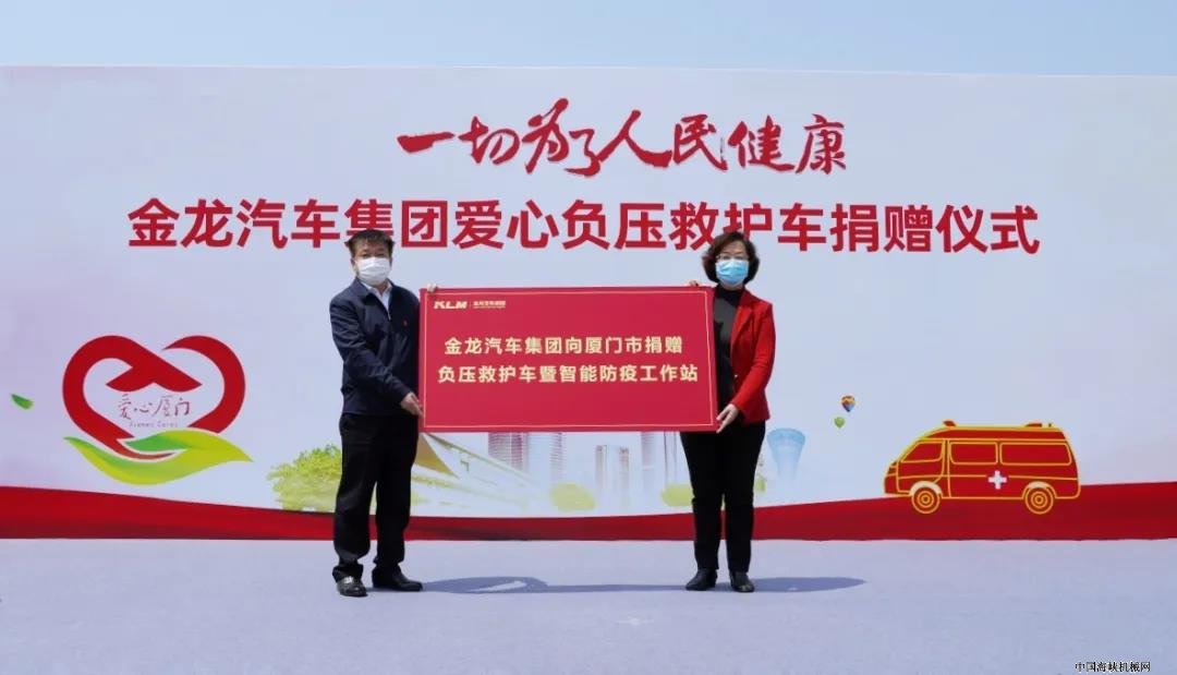 4月8日,福汽集团向厦门市捐赠8台金龙负压救护车和4台金龙智能防疫工作站,该批物资将投入疫情防控一线,助力厦门市新冠肺炎疫情防控工作。厦门市人民政府副市长国桂荣,福汽集团党组副书记、总经理陈建业,福汽集团党组成员、副总经理、金龙汽车集团副董事长谢思瑜等出席捐赠仪式。