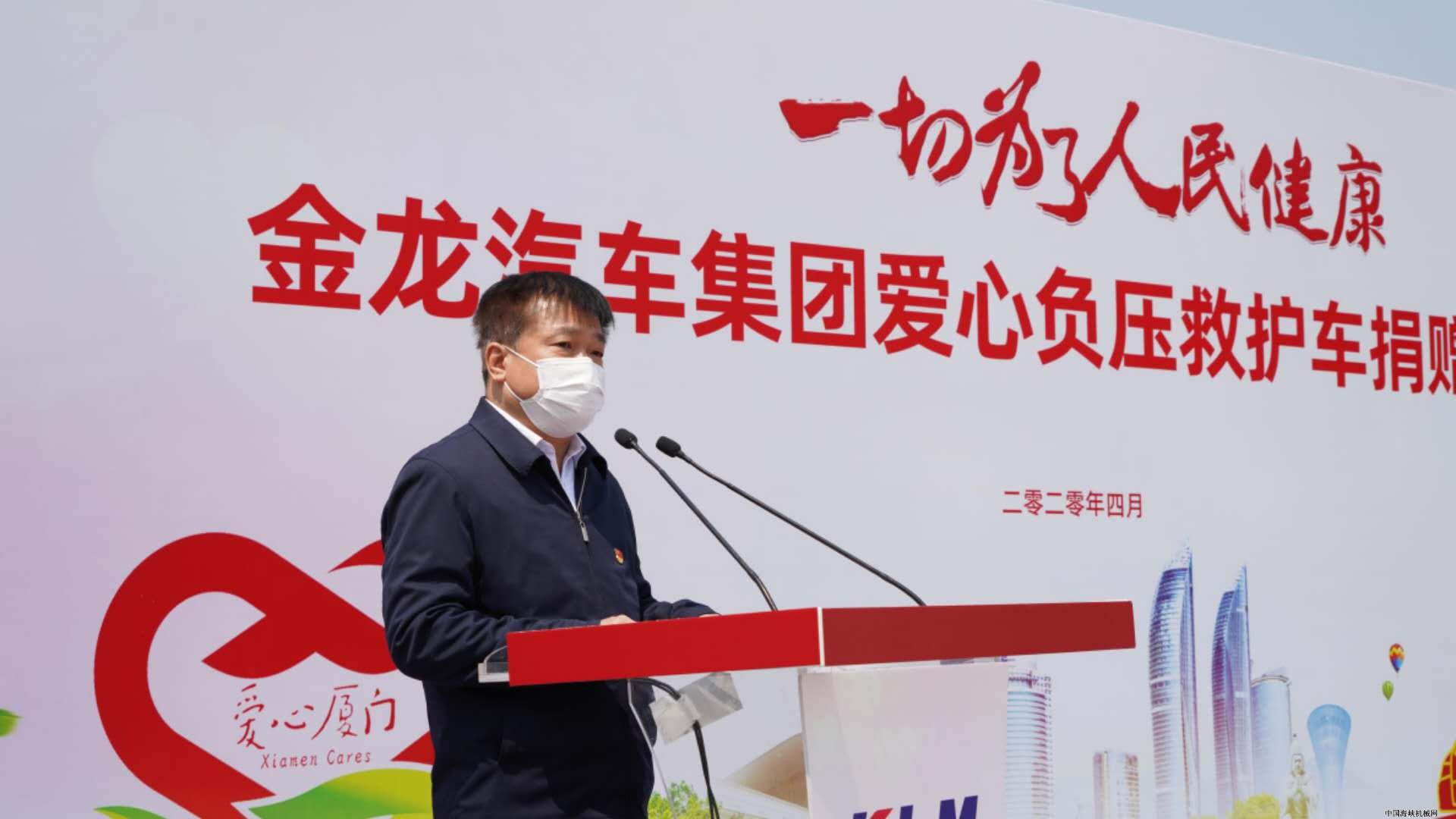 厦门市卫健委姚冠华主任对福汽集团的支持帮助表示感谢。他认为,当前境外疫情快速扩散蔓延,给厦门疫情防控和经济社会发展带来新的挑战,金龙汽车集团在此次新冠肺炎疫情防控阻击战所作的贡献,彰显了厦门制造企业的创新力量和使命担当。