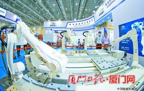 厦门工博会现场展示的机器人智能装备生产线。(厦门日报记者 张奇辉摄)