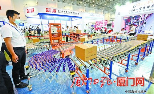 7月9日,2020厦门工博会在厦门国际会展中心开幕。图为智能输送平台展示。