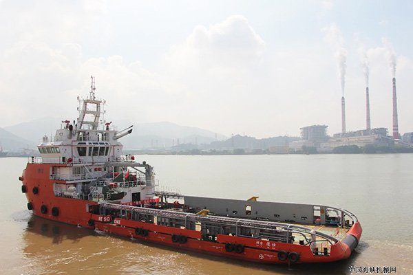 该船总长66.2米,型宽16米,型深6.2米,吃水5米,主要用于海上平台和海岸之间甲板货物和人员运输,并将淡水、柴油、散装水泥、泥浆、钻井水、盐水、通用材料及设备等易耗品从岸上基地运到海上平台,满足CCS船级社要求。