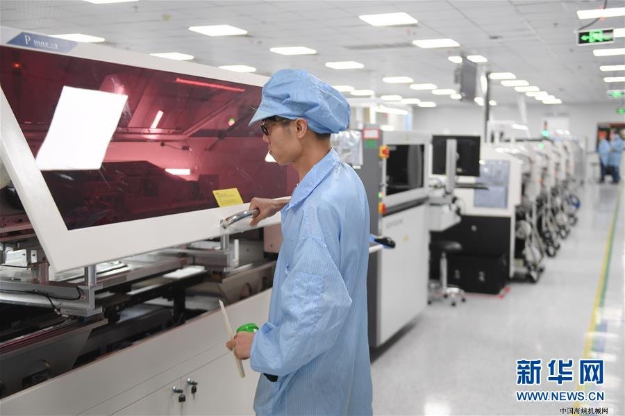 9月22日,在福建省福州市一家高新技术企业,技术人员操作机器对交换机主板进行自动焊接。