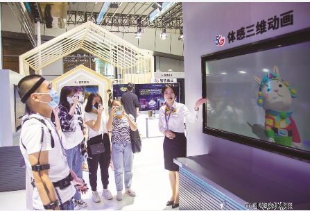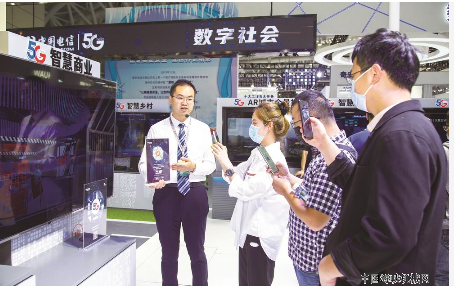 “数字生活”展区中,中国电信模拟智慧家庭、智慧社区、智慧乡村三大生活化场景,设置了5G+智慧社区、5G+智慧乡村、智慧社区设备、5G巡防机器人、5G+智慧商业、智慧家庭、VR互动体验、云办公8个展项内容,让观众零距离体验中国电信精彩纷呈的智慧应用。特别是智慧家庭展项现场展示了天翼高清、智能门锁、小翼音箱、温湿度探测器、天翼看家监控等实物,场景化呈现智能家居,让观众直观感受5G对未来生活带来的改变。VR(虚拟现实)互动展项让观众戴上VR眼镜亲身上阵体验《极限滑雪》《头号玩家》等游戏,享受基于5G网络实现的流畅、超高清虚拟游戏场景,受到观众广泛喜爱、排队体验。
