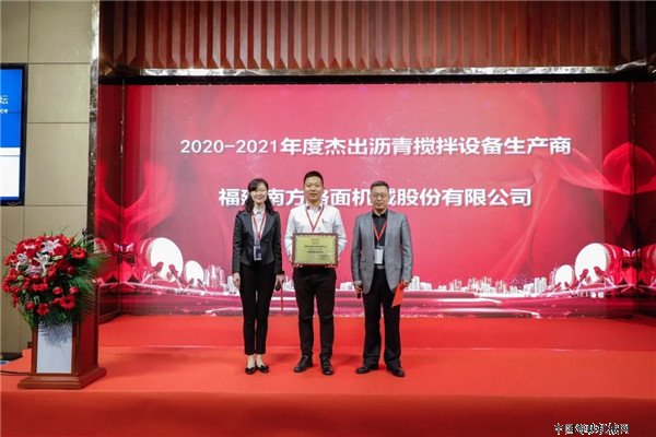 会议同期举行了2020-2021年度行业颁奖典礼,南方路机凭借勇于探索创新,生产制造的沥青搅拌设备具有节能环保、结构先进等特点,并可针对国内外各种使用工况进行独特设计,受到了行业及用户的广泛认可,再次荣获“杰出沥青搅拌设备生产商”称号。
