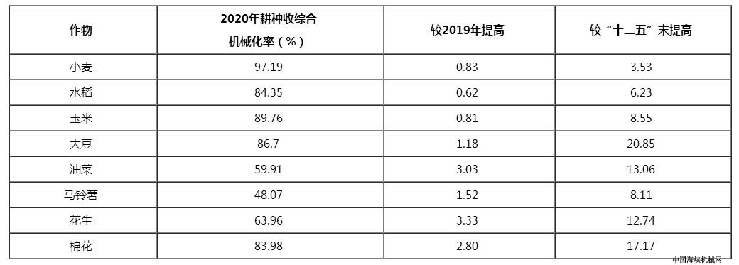 全国农作物耕种收综合机械化率达71.25%,较上年提高1.23个百分点,较“十二五”末提高7.43个百分点;其中,机耕率、机播率、机收率分别达到85.49%、58.98%、64.56%。畜牧养殖、水产养殖、农产品初加工、设施农业等产业机械化率分别达到35.79%、31.66%、39.19%、40.53%,较上年分别提高1.57、1.78、1.61、2.22个百分点。