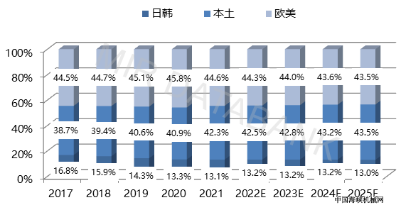 2017-2025E年中国低压变频器市场日韩/本土/欧美份额占比