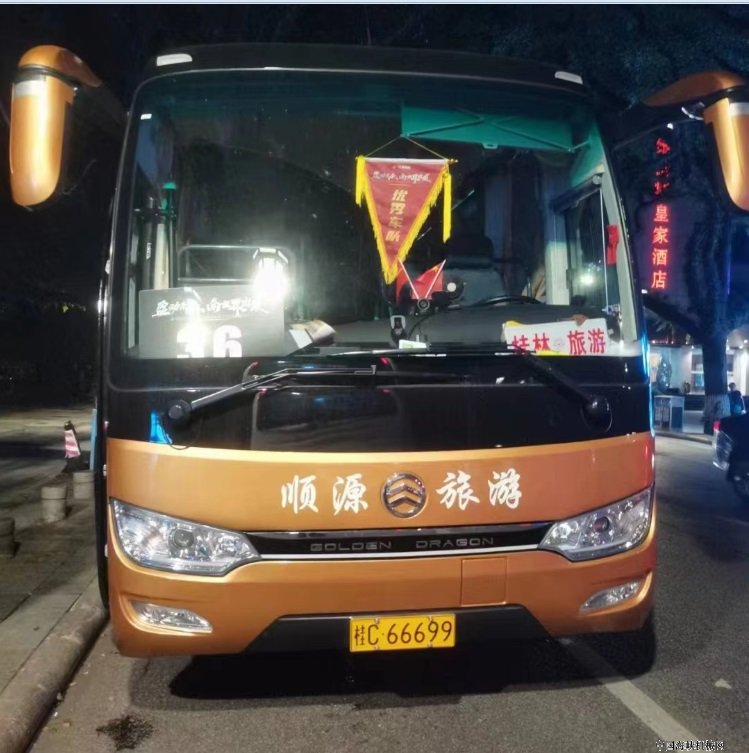 葛董说:“今天看到交付的金旅新车,我很满意,大部分的车已经启程往桂林,还剩下4辆车在等司机,他们因为买不到动车票所以耽误到今晚才会到。我们原计划是想开一辆金旅大巴载着我们所有接车的司机一起过来的,但是目前要接的旅游团队太多,没办法,公司所有的车辆都出车了,司机只能坐动车过来。”从葛董无奈又喜悦的讲述中,我们感受到了桂林旅游市场的复苏和增长,感受到了葛董对当前市场发展的满满信心。愿金旅客车与顺源汽运携手,用优异的品质共同为桂林旅游市场提供更好的服务!