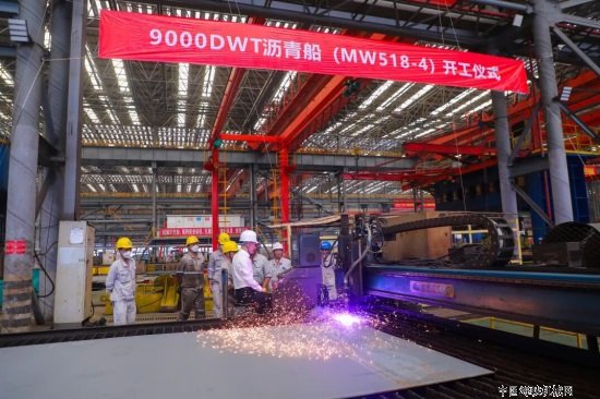 上午,马尾造船建造的9000DWT沥青船(MW518-4)顺利开工,其第一块钢板在激光切割中火花四溅,象征着新船建造正式拉开帷幕。
