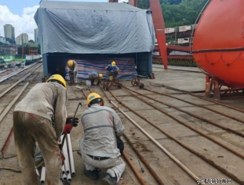 10月15日,福建船政旗下福宁重工建造的78米操锚供应船(DN78M-AHTS-4)顺利上船台。