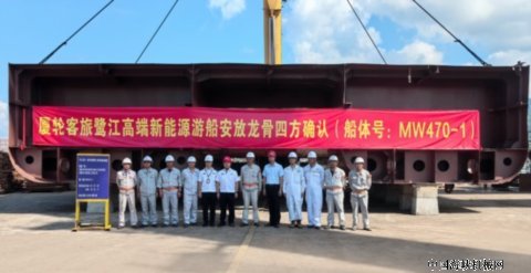10月15日,福建船政旗下福宁重工建造的厦轮客旅鹭江高端新能源游船(MW470-1)上船台。
