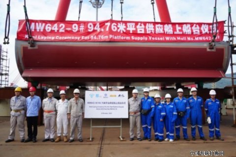 10月24日,福建船政旗下马尾造船建造的94.76米平台供应船(MW642-9)顺利上船台。