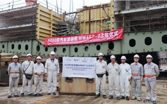 10月30日,福建船政旗下马尾造船建造4200车双燃料汽车滚装船(MW467-2)顺利上船台。