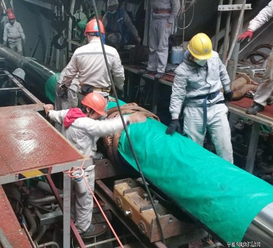 03 轨道式小车运送螺旋桨轴进行穿轴