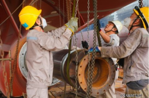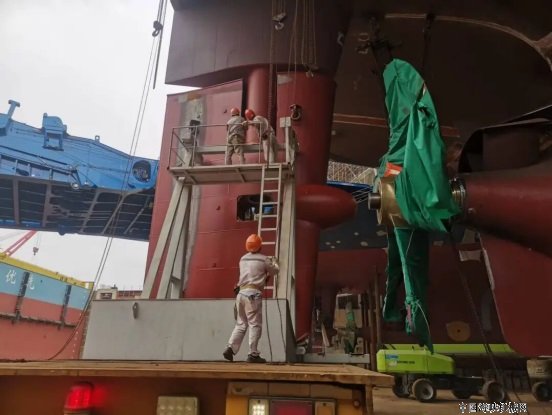 在各部门密切配合下,螺旋桨与舵叶均可在1小时内完成盘运就位任务。该项目不仅通过利用余废料制作工装,降低了生产成本,且施工方便,节省了大量人力和工期。