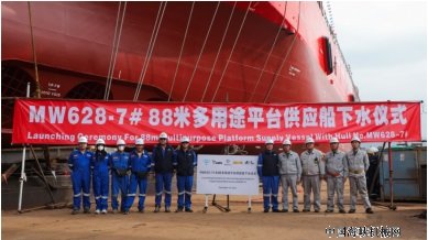 12月19日,福建船政旗下东南造船建造的88米多用途平台供应船(MW628-7)顺利下水。