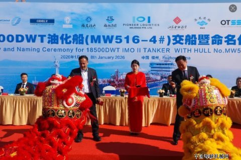 1月8日,马尾造船建造的18500DWT油化船(MW516-4)顺利交付,较合同期提前235天。江苏金融租赁、先锋物流控股集团、BV船级社、上海欧得利船舶工程有限公司、FLEET监造公司、OSM Thome公司、福船集团和福建船政相关领导出席交船仪式。